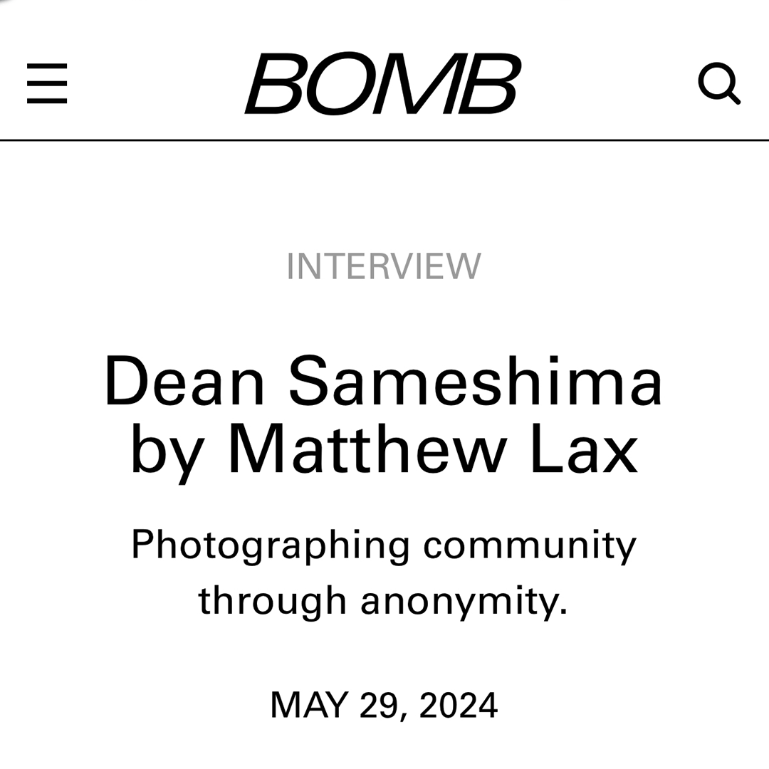 Interview with Dean Sameshima, BOMB Magazine, May 2024
